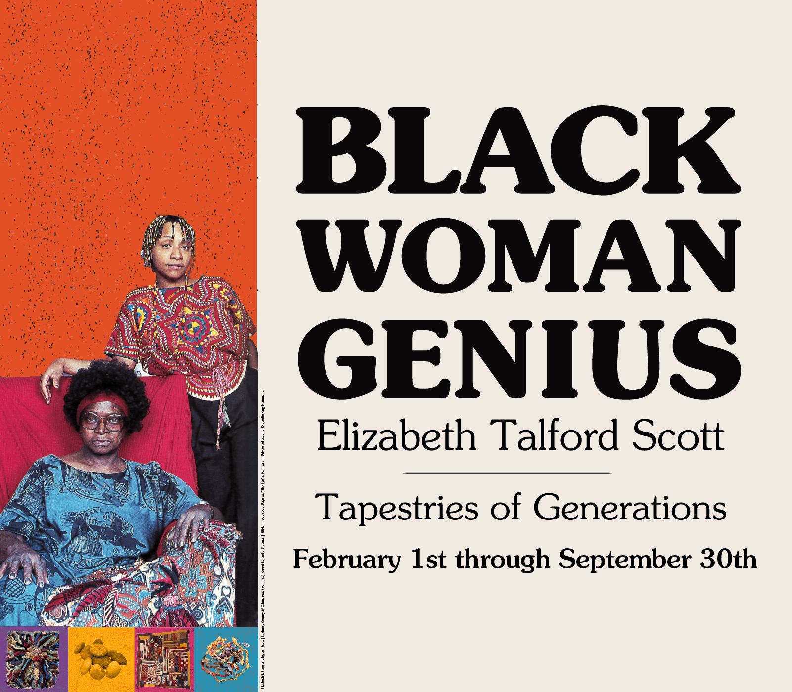 NOTE: Purchasing a ticket to BLACK WOMAN GENIUS: Elizabeth Talford Scott—Tapestries of Generations view grants visitors access to all current Museum exhibitions.