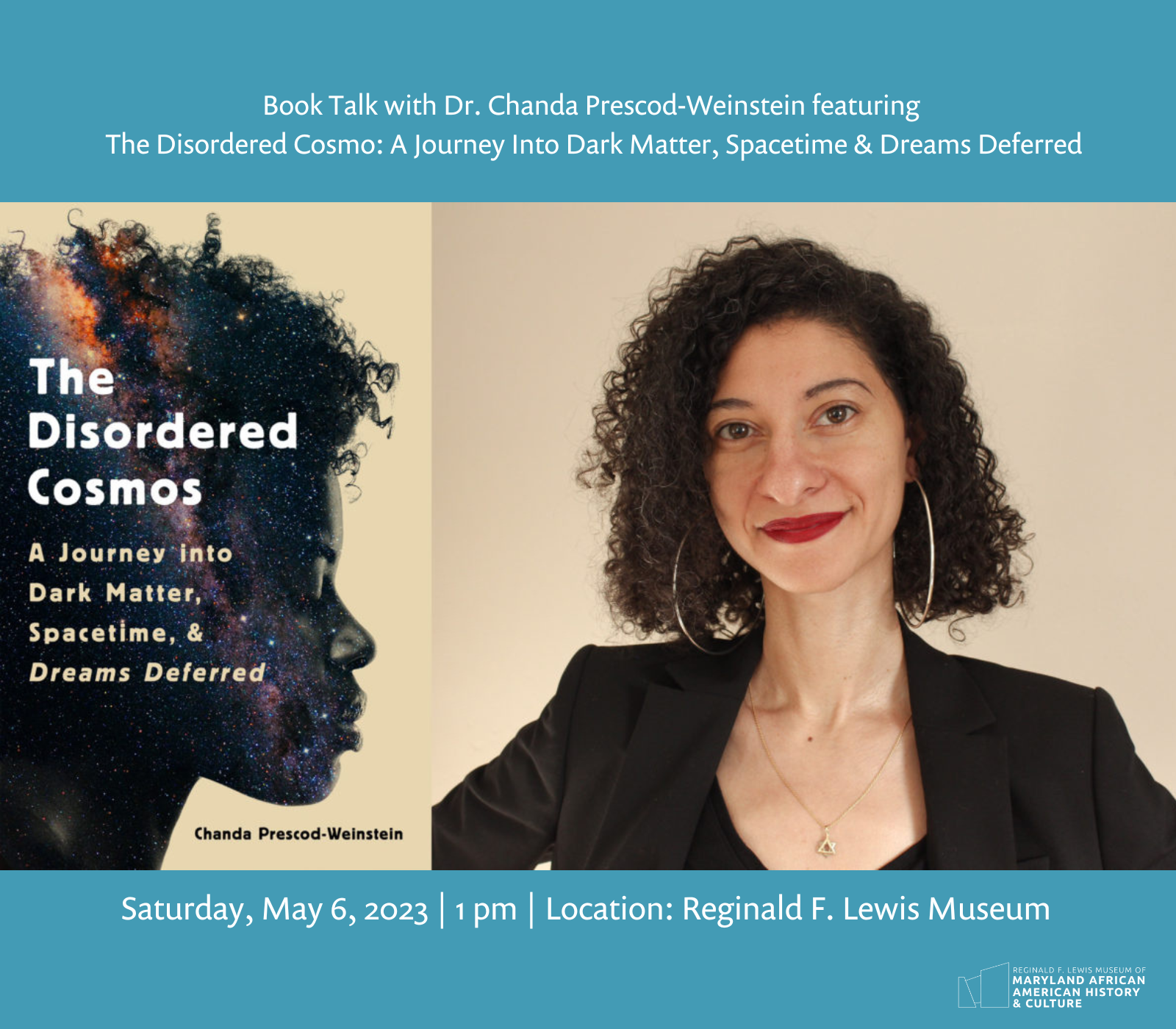 Join The Lewis Museum as Dr. Izetta Autumn Mobley, Director of Interpretation, Collections & Education, talks with Dr. Chanda Prescod-Weinstein about race, gender, and space and her book, In The Disordered Cosmos: A Journey Into Dark Matter, Spacetime & Dreams Deferred. Dr. Prescod-Weinstein will share her love for physics; from the Standard Model of Particle Physics and what lies beyond it to the physics of melanin in skin, to the latest theories of dark matter—along with a perspective informed by history, politics, and the wisdom of Star Trek. She urges us to recognize how science, like most fields, is rife with racism, misogyny, and other forms of oppression. She lays out a bold new approach to science and society, beginning with the belief that we all have a fundamental right to know and love the night sky. Dr. Chanda Prescod-Weinstein is an Assistant Professor of physics and astronomy and core faculty in women’s and gender studies at the University of New Hampshire. She is also a columnist for New Scientist and Physics World. Her research in theoretical physics focuses on cosmology, neutron stars, and dark matter. She also does research in Black feminist science, technology, and society studies. Nature recognized her as one of 10 people who shaped science in 2020, and Essence magazine has recognized her as one of “15 Black Women Who Are Paving the Way in STEM and Breaking Barriers.” A co-founder of Particles for Justice, she received the 2017 LGBT+ Physicists Acknowledgement of Excellence Award for her contributions to improving conditions for marginalized people in physics and the 2021 American Physical Society Edward A. Bouchet Award for her contributions to particle cosmology.
