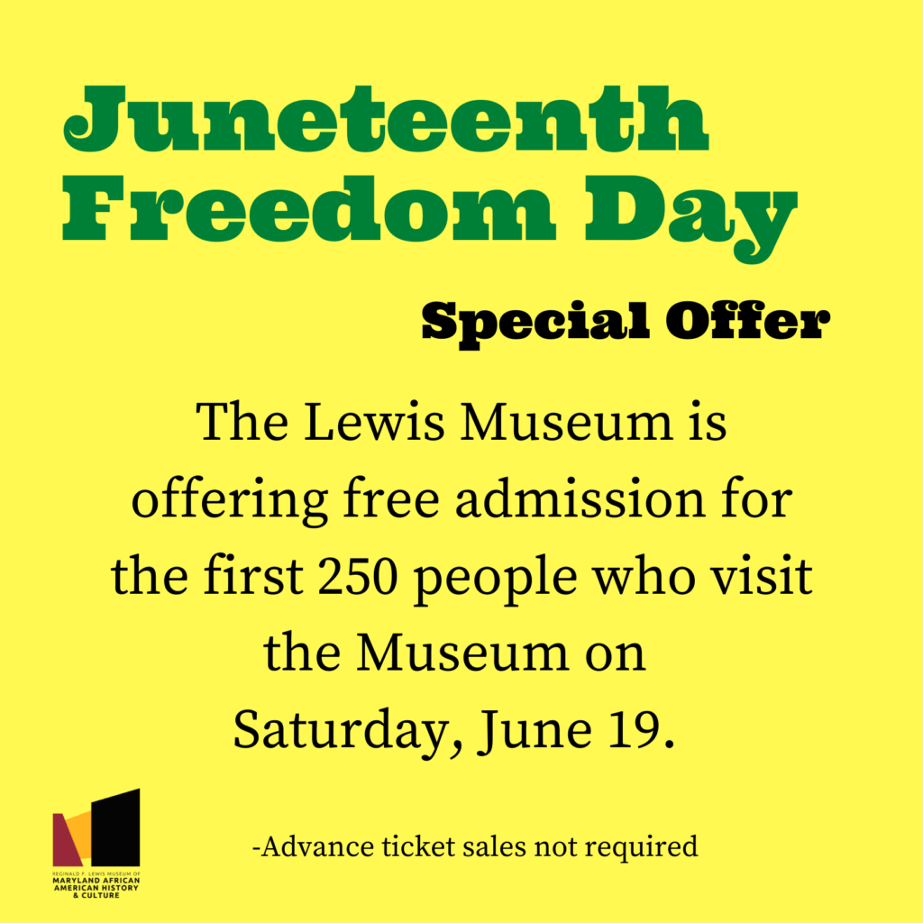 Celebrate Juneteenth exploring African American history and culture while visiting the Reginald F. Lewis Museum on June 19th from 10 am to 5 pm. The first 250 visitors who visits the museum on this day receives Free Admission. Check out the calendar events for Juneteenth programs taking place today. Programs included with your free admission.