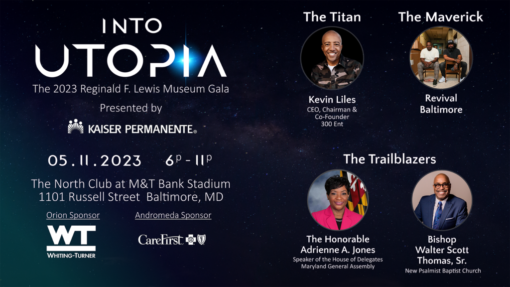 Escape to a world where fantasy and futurism reign supreme as The Reginald F. Lewis Museum transports you to a place filled with limitless possibilities … Into Utopia properly starts the Spring Gala season and recognizes luminaries who boldly imagined the seemingly impossible and made it reality. Join us as we recognize leaders who embody our namesake’s distinction as a titanic of industry, a trailblazer, and a maverick.