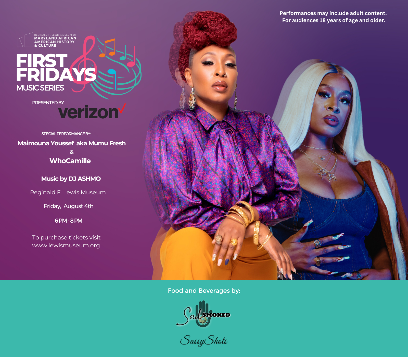 Vibe with us this month as we celebrate the 50th Anniversary of Hip Hop with performances by Maimouna “Mu Mu Fresh” Youssef and WhoCamille, a discussion on the five elements of hip hop, and a pop-up art show.   Baltimore-born and D.C.-raised, Grammy®-nominated singer Maimouna Youssef blends gospel, jazz, soul, and hip hop to encourage listeners to believe in their own potential. Mumu Fresh has toured internationally as a critically acclaimed Afro-Indigenous singer, MC, songwriter, activist, workshop facilitator, and audio engineer who’s been called a “quadruple threat” by The Roots’ Black Thought and “groundbreaking” by Oscar-winning artist Common. Mumu Fresh’s music and philanthropic endeavors has been featured in publications such as Variety, Ebony, Essence, BET, NPR, Al-Jazeera, Afro Punk & more. Maimouna has also served as a mentor for several Grammy U-affiliated young aspiring artists.