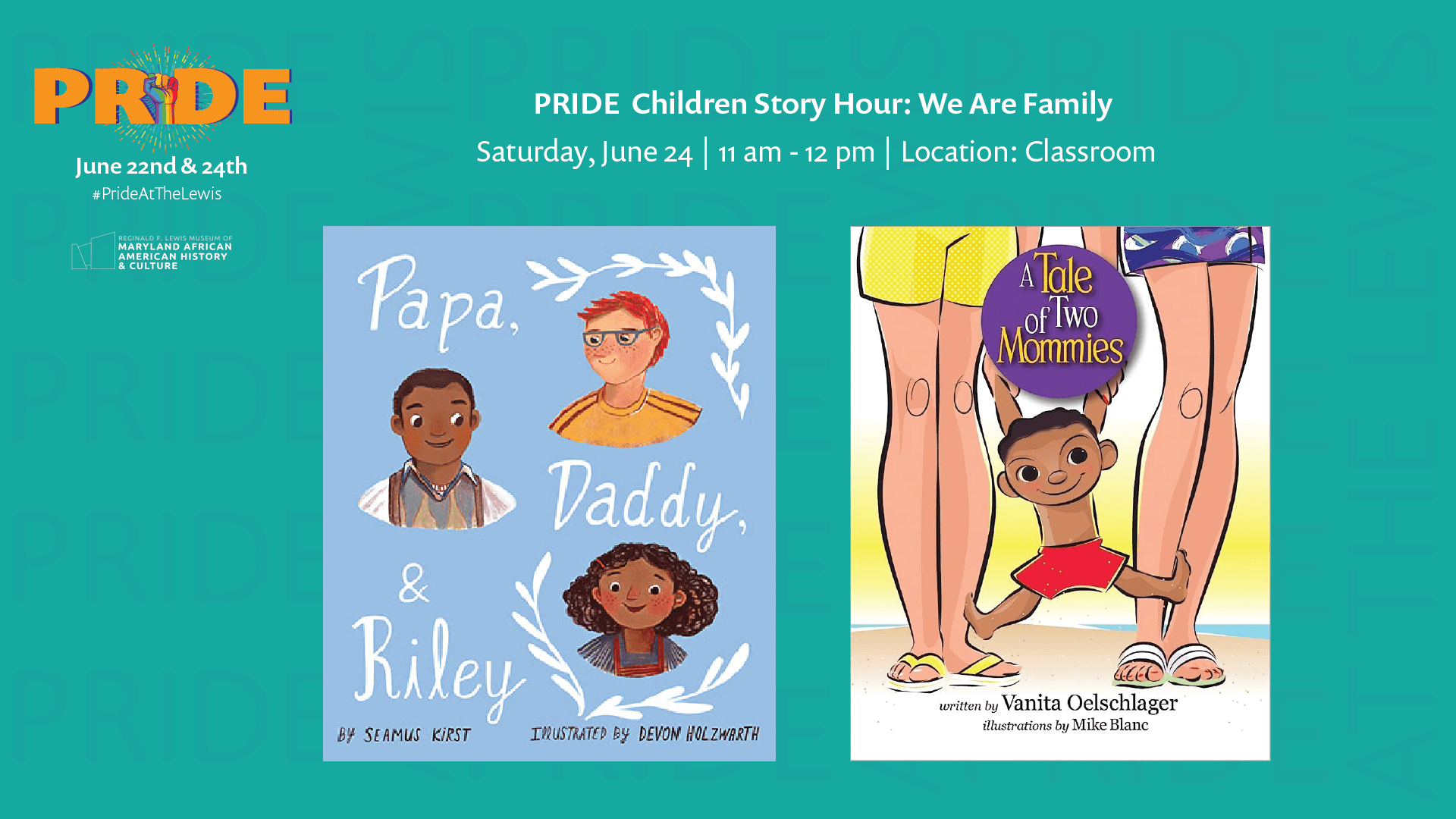 The Lewis Museum celebrates Baltimore Pride Week with a children’s story reading and art activity rooted in the diverse ways families show up. Hear a story reading of A Tale of Two Mommies by Vanita Oelschlager and Papa, Daddy & Riley by Seamus Kirst read by our partners from the Pride Center of Maryland. An art project celebrating the families will follow.