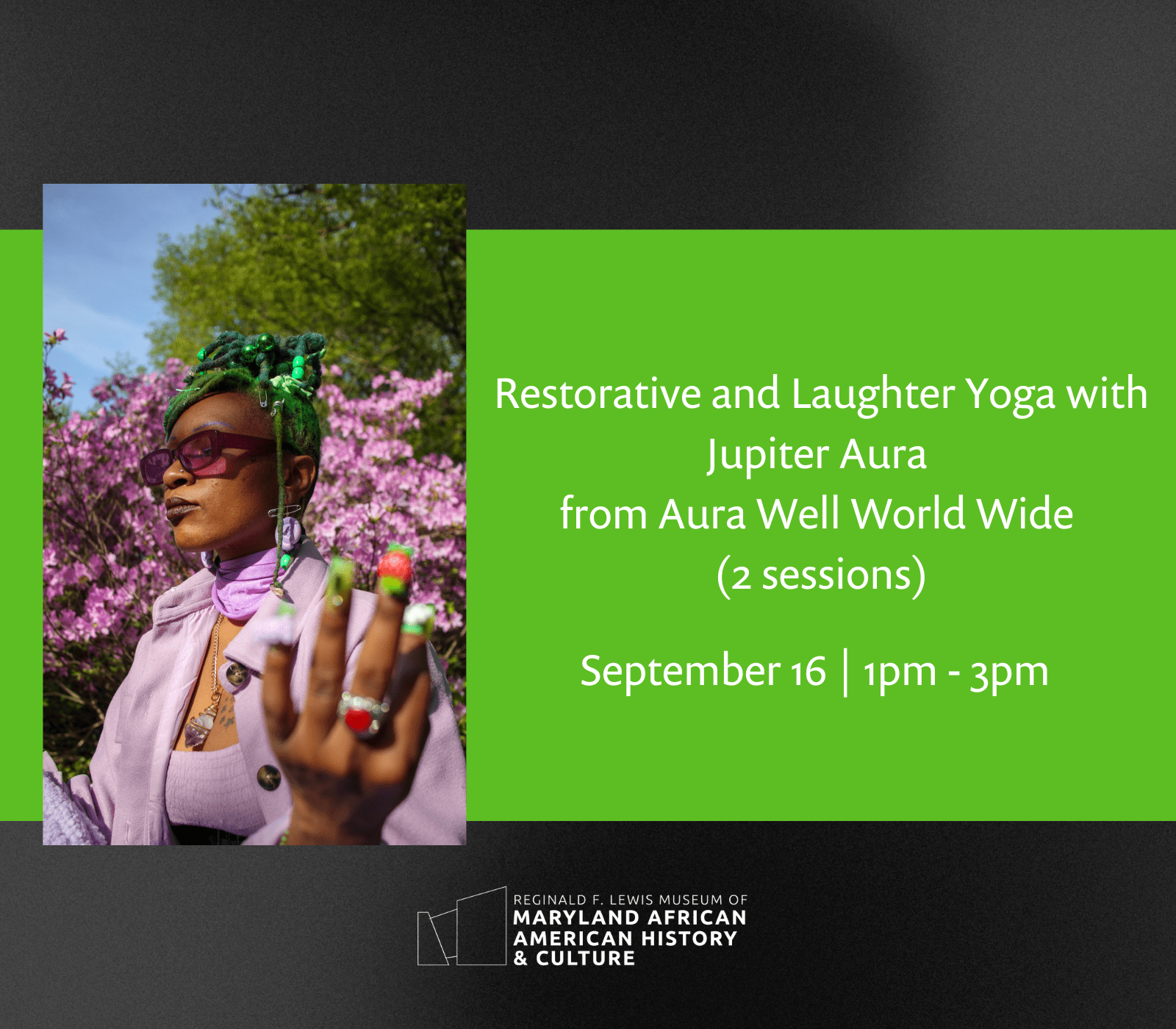 September 16th, 2023 | 1 pm – 3 pm (2 sessions) Rejuvenate your mind, body and spirit through mindful breathing and yoga practice at the Reginald F. Lewis Museum. Our Yoga Wellness Series invites yoga enthusiasts, new and advanced to join us for a variety of holistic and creative yoga workshops between September 2023 and January 2024. Participants should bring yoga mats and wear comfortable clothing.