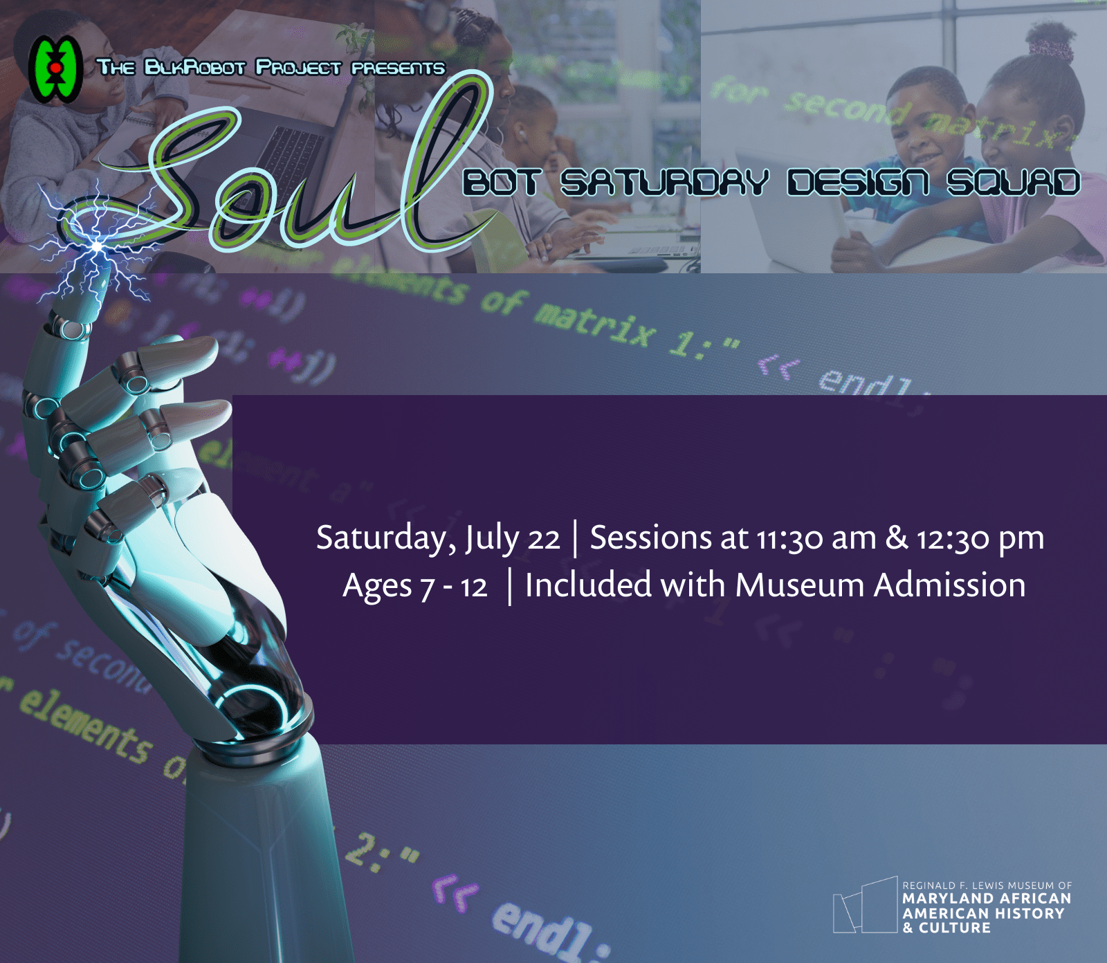 The BlkRobot Project presents SOULBOT SATURDAY DESIGN SQUAD Saturday, July 22 | Session at 11:30am & 12:30pm