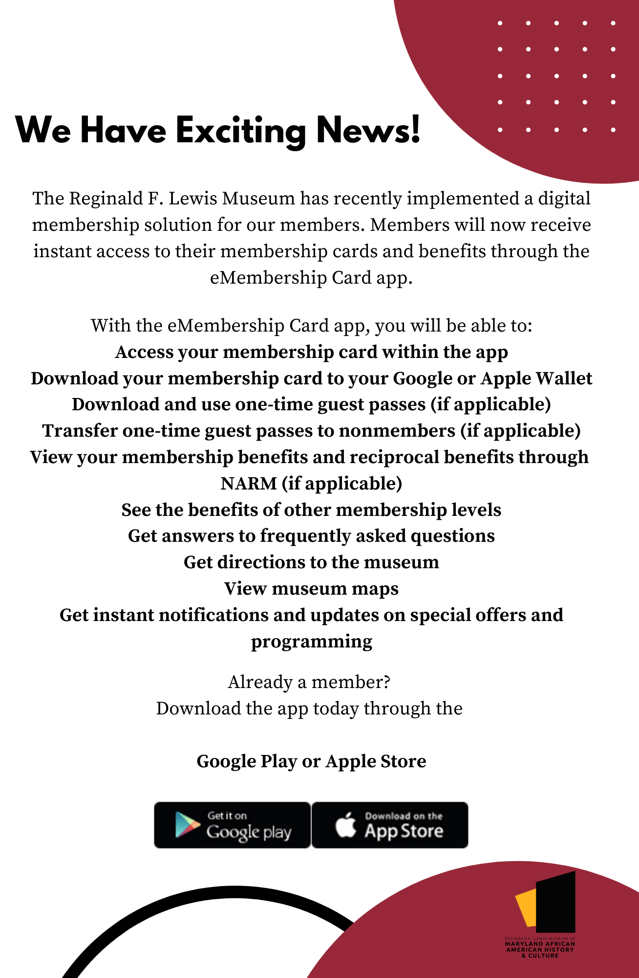 - Select The Reginald F. Lewis Museum tile and touch Find My Membership Cards