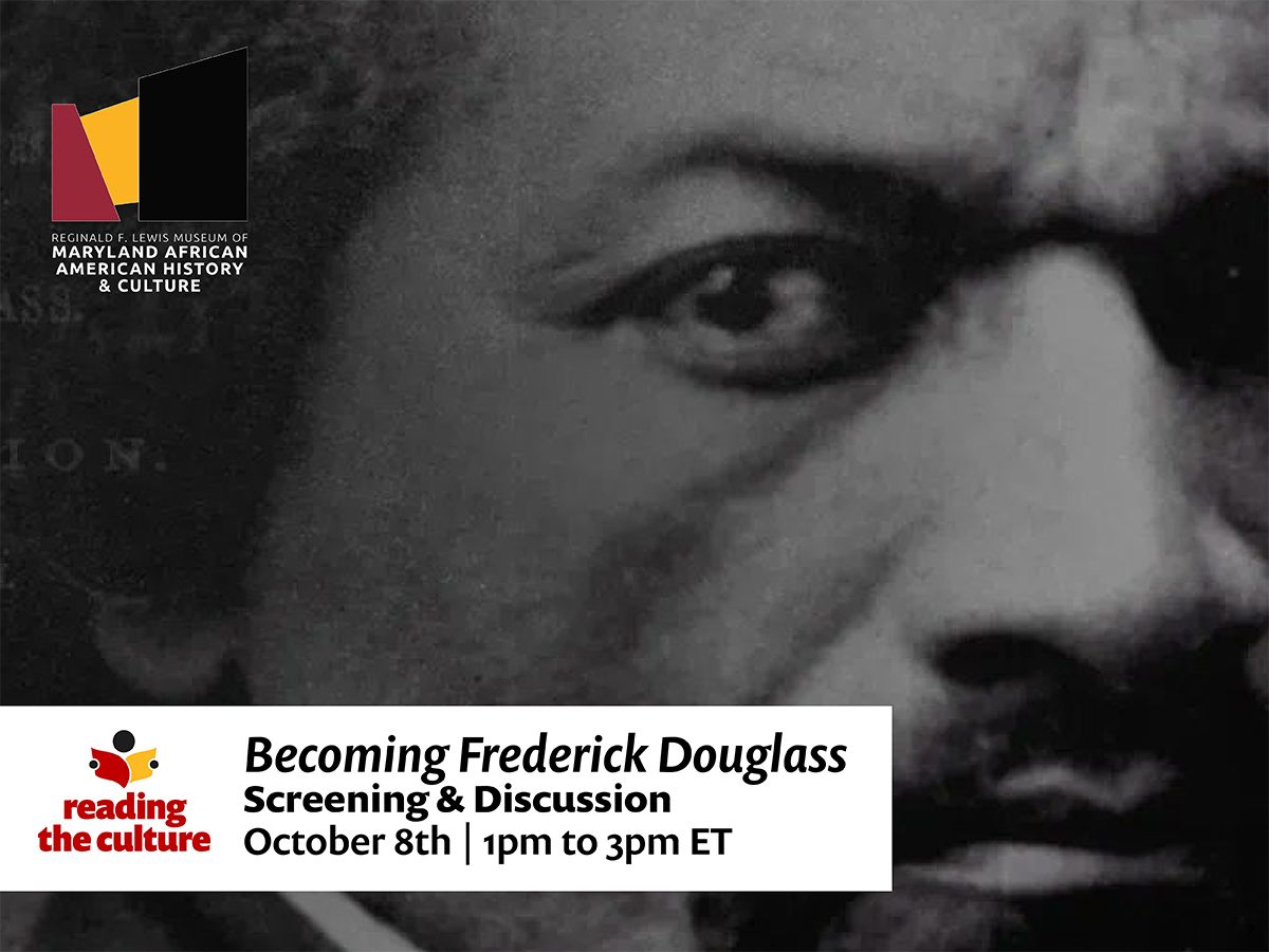 Join us for a screening and conversation with cast members from Becoming Frederick Douglass. Produced by Maryland Public Television in association with Firelight Films executive producers Oscar®-nominated Stanley Nelson (Attica, Freedom Riders, The Black Panthers: Vanguard of the Revolution) and Lynne Robinson, Becoming Frederick Douglass is the story of how a man born into slavery became one of the most prominent statesmen and influential voices for democracy in American history. Born in 1818 on Maryland’s Eastern Shore, he escaped from slavery in 1838 and went on to become the most well-known leader of the abolitionist movement. A gifted writer and powerful, charismatic orator, it is estimated that more Americans heard Douglass speak than any other 19th-century figure — Black or white. The documentary explores how Douglass controlled his own image and narrative, embracing photography as a tool for social justice, and the role he played in securing the right to freedom and democracy for African Americans.